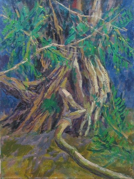 In 2002 the Tree Council chose 50 trees to celebrate the Jubilee. One, a black poplar, is in Alan’s parish. He decided to paint all 50, making studies of each in situ.