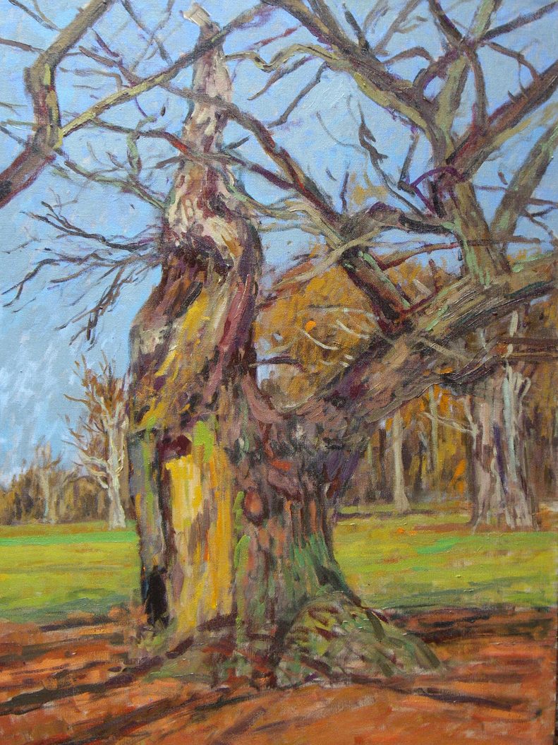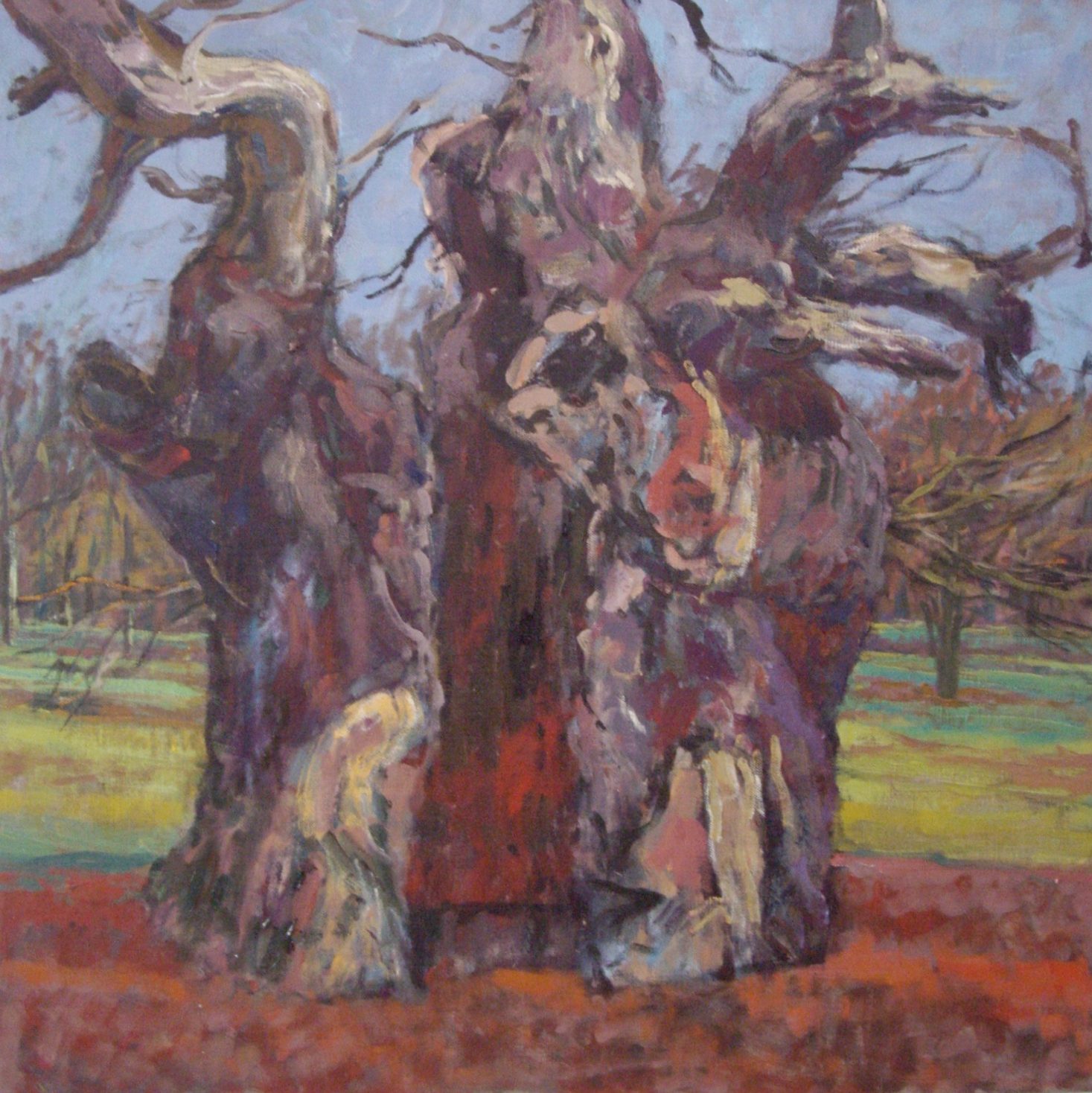 There is in the grounds of Hatfield House a fine collection of old oak trees. Alan obtained permission from Lord Salisbury to make studies of many of them, and the subsequent paintings were a major part of an exhibition at Stevenage, which Lord Salisbury opened.
