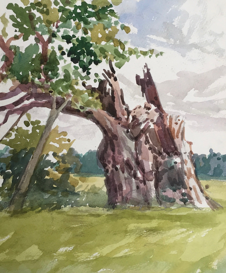 Snow in Deepdale, watercolour, 30 x 20 cms, Charlton Mulberry Detail, conté, 41 x 31 cmsTemple of Zeus, Delphi, watercolour, 28 x 19 cmsBlind Lane (1), conté, 42 x 27 cmsLlangernyw Yew, acrylic, 38 x 28 cms
